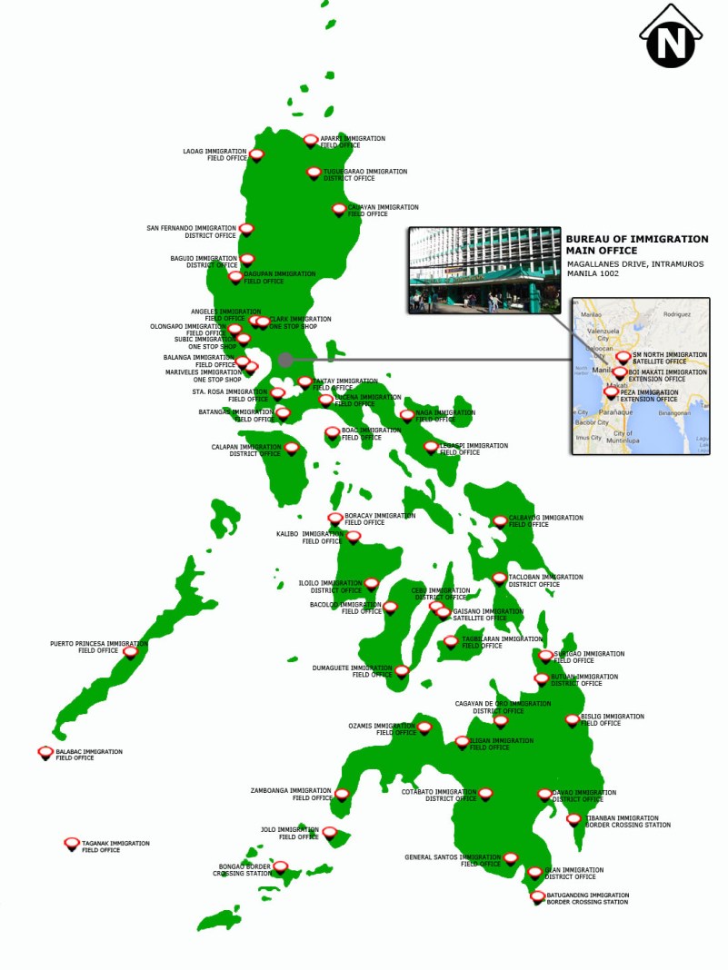 これはフィリピンのどこにイミグレーションも支社がある場所を示す地図です。